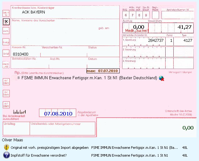 Wird nun z.B. vom Arzt nicht explizit "FSME-Impfstoff Erw. 1 op" verordnet, zahlt die Kasse (unberechtigterweise) nur den billigeren Kinderimpfstoff.