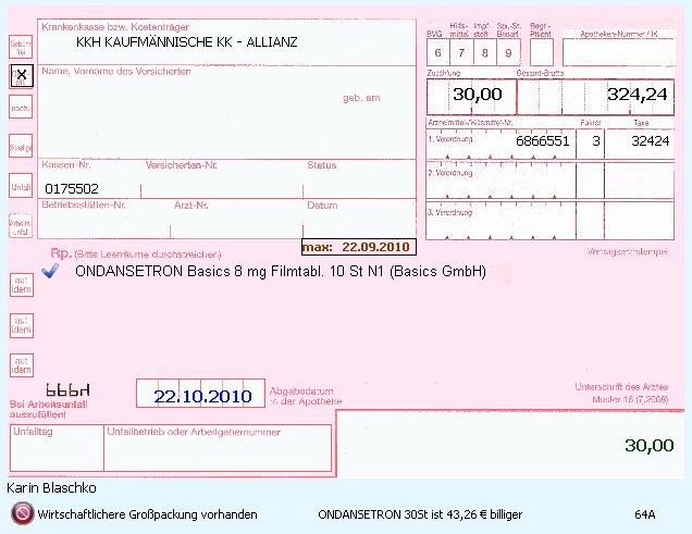 Dieser Hinweis erscheint, wenn mehrere Kleinpackungen auf das Rezept gedruckt wurden und eine größere Packung mit der verordneten Menge vorhanden ist.